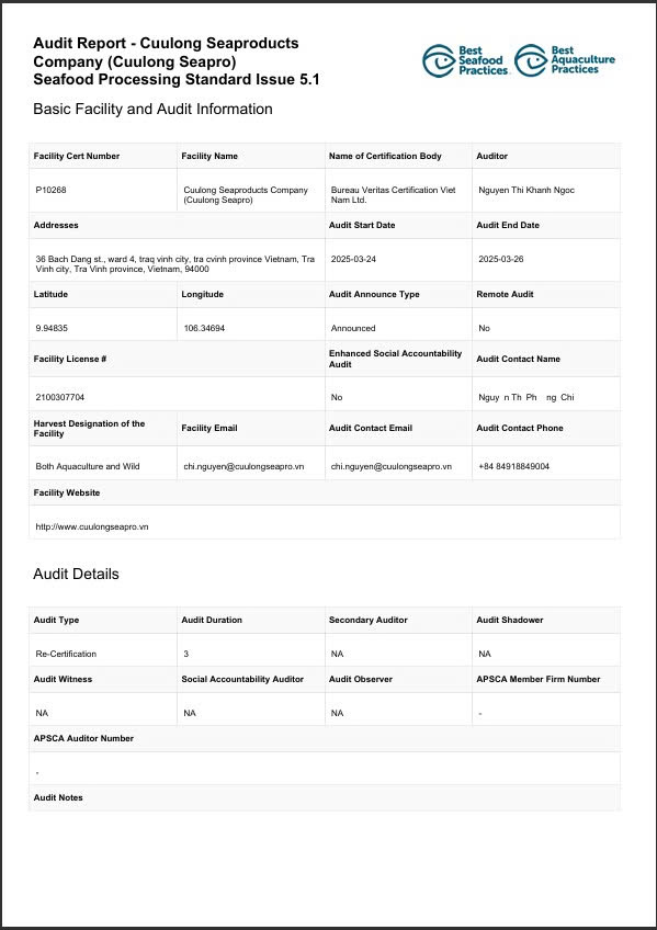 BAP Certificate Report – Ensuring quality, safety, and sustainability.