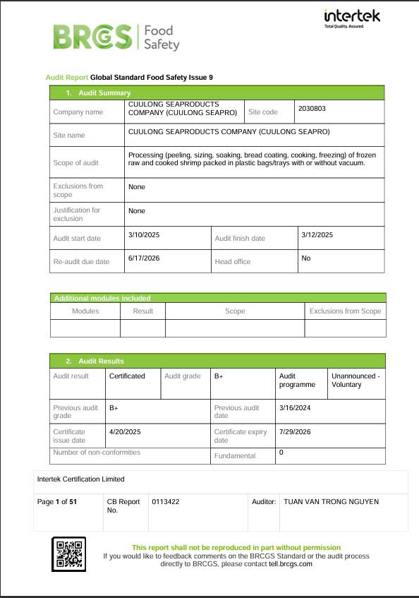 Comprehensive BRC Audit Report ensuring global food safety compliance.