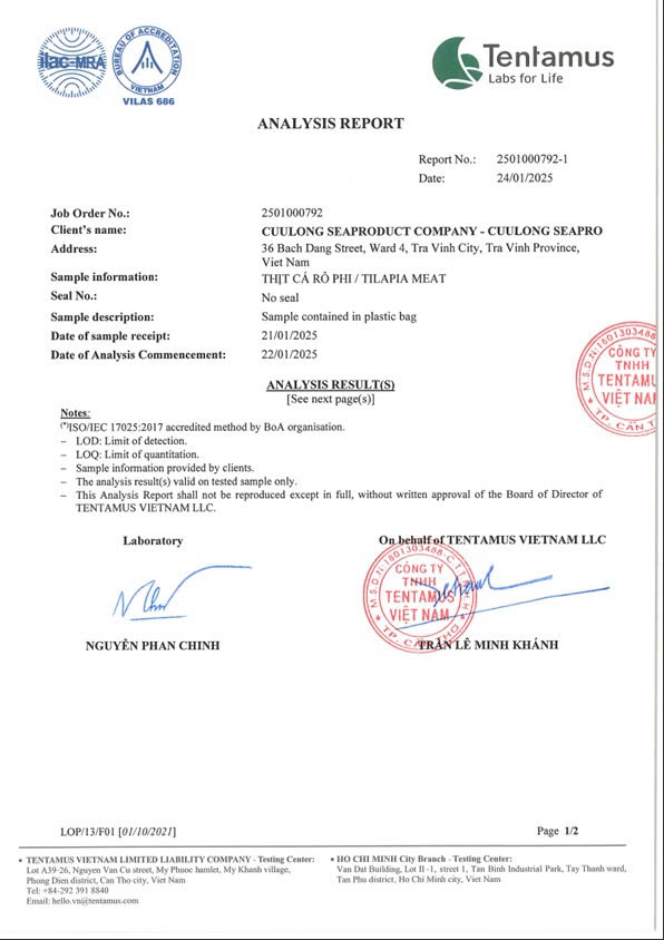 Analysis Report Meat Tilapia